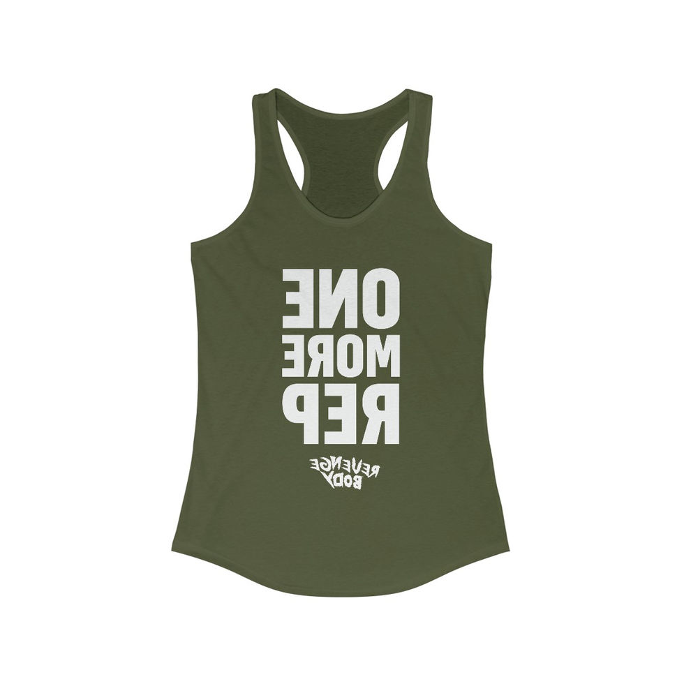 FUEL YOUR REVENGE BODYMake a statement with our "One More Rep" tank, designed to fuel your active lifestyle. The reversed text will appear correctly when you look in the mirror, serving as a constant reminder to push yourself for that extra rep.